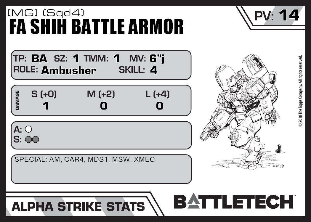 | Fa Shih Battle Armor [MG] (Sqd6) | 348 | 15 | Advanced | TR:3058U | |