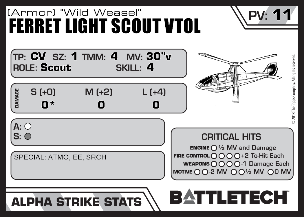 | Ferret Light Scout VTOL (Cargo) | 17 | 6 | Introductory | TR:3039 | |
