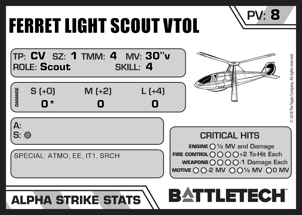| Ferret Light Scout VTOL (Armor) "Wild Weasel" | 103 | 11 | Introductory | TR:3039 | |