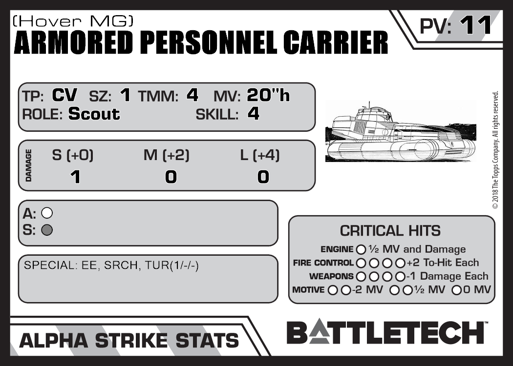 | Armored Personnel Carrier (Hover LRM) | 193 | 12 | Introductory | TR:3039 | |
