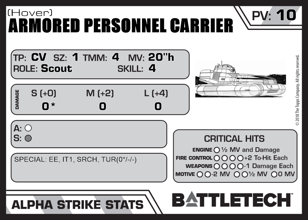 | Armored Personnel Carrier (Hover SRM) | 131 | 11 | Introductory | TR:3039 | |