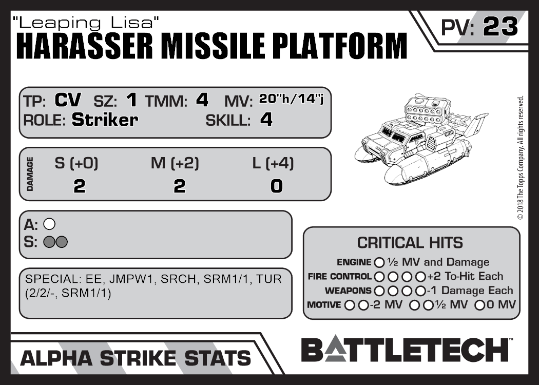 | Harasser Missile Platform (LRM) | 412 | 18 | Introductory | TR:3039 | |