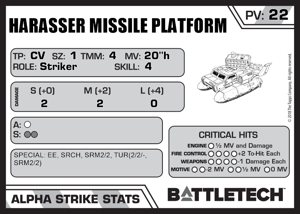 | Harasser Missile Platform (LRM) | 412 | 18 | Introductory | TR:3039 | |