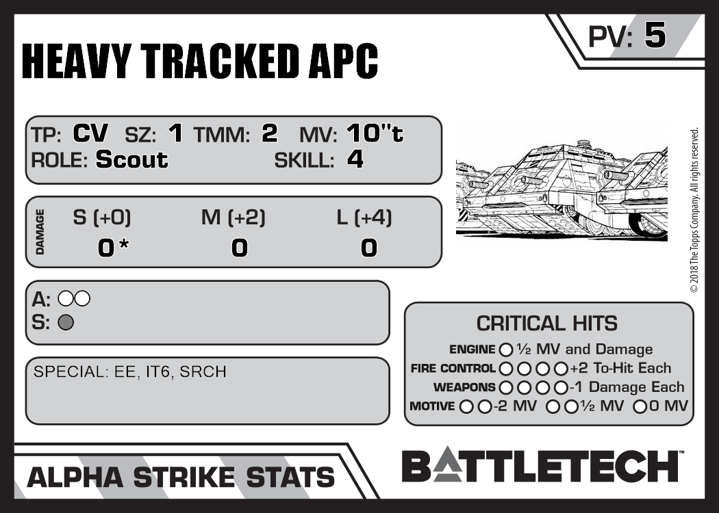 | Heavy Tracked APC (SRM) | 266 | 11 | Introductory | TR:3060 | |