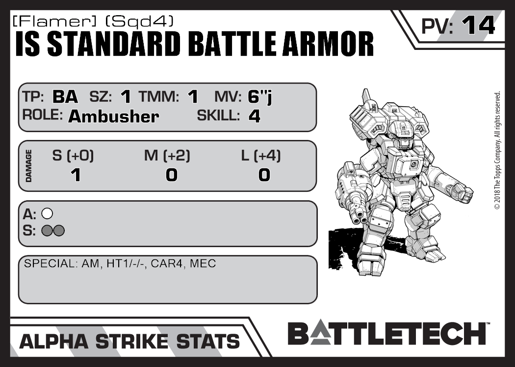 | IS Standard Battle Armor [Flamer] (Sqd5) | 268 | 17 | Standard | TR:3058U | |