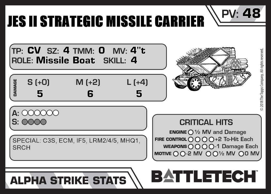 JES II Strategic Missile Carrier (Support) 1,209 42 Standard TR:3145