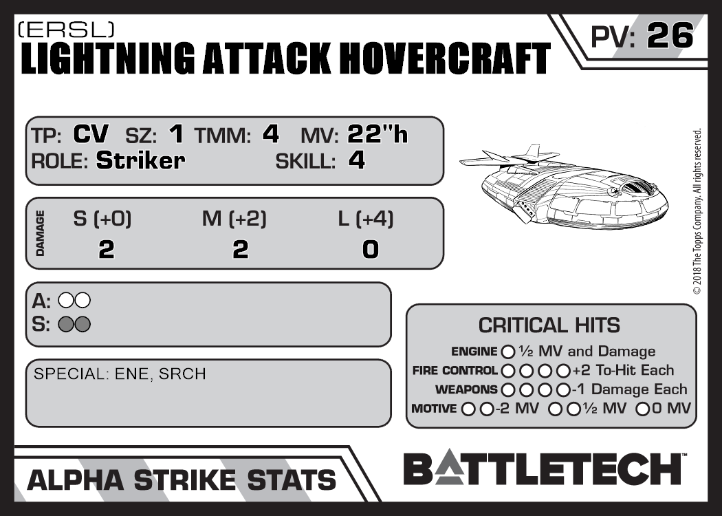 | Lightning Attack Hovercraft CX-3 | 710 | 25 | Experimental | XTR:Comstar |