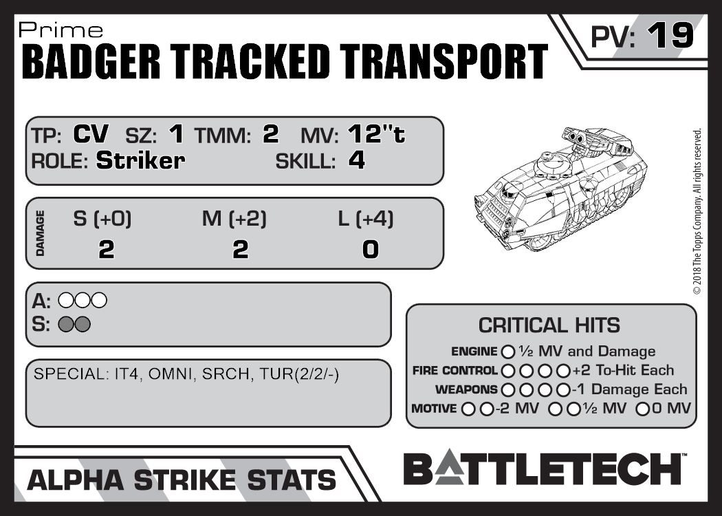 | Badger Tracked Transport D | 540 | 20 | Standard | TR:3058U | |