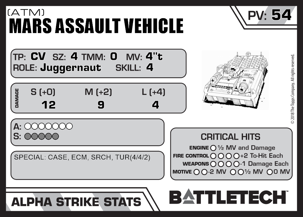 Mars Assault Vehicle (XL) 2,520 57 Standard TR:3060
