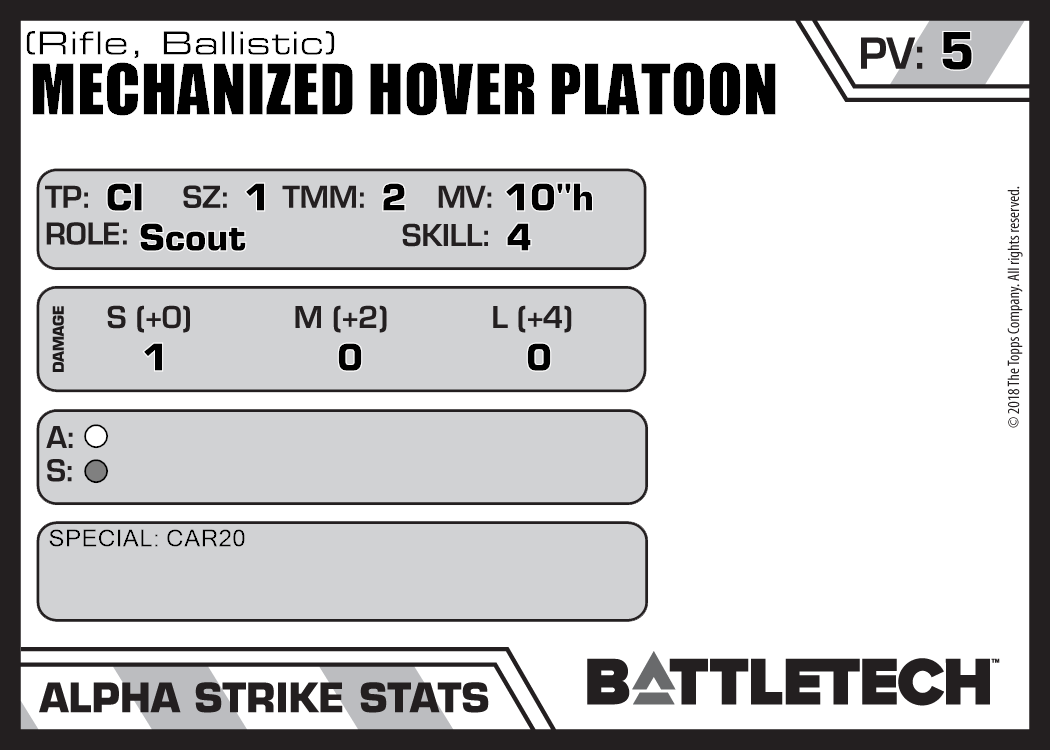 | Mechanized Hover Platoon (LRM) | 32 | 5 | Standard | TW | |
