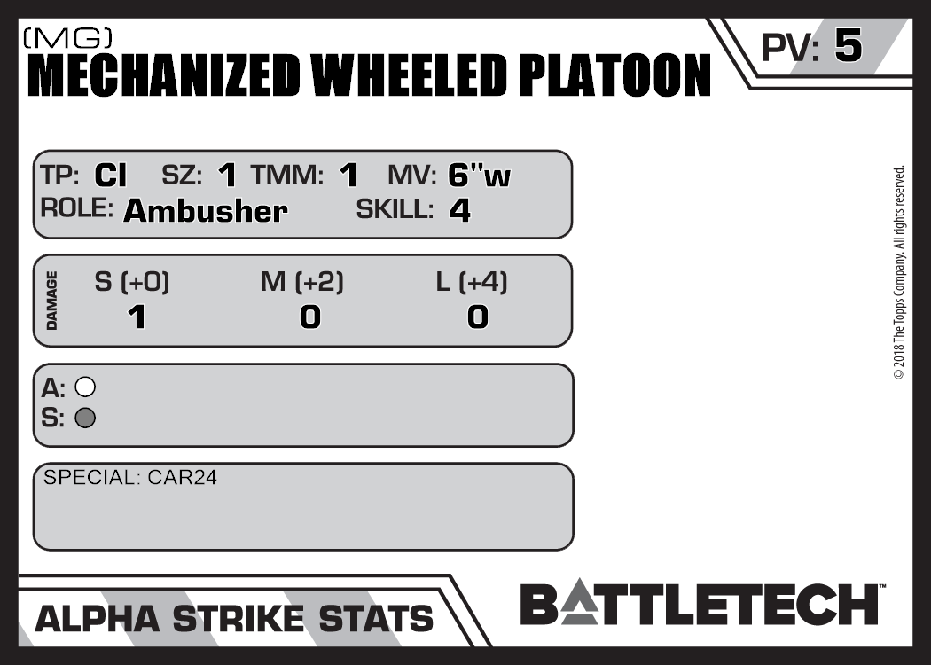 | Mechanized Wheeled Platoon (Rifle, Energy) | 56 | 9 | Standard | TW | |
