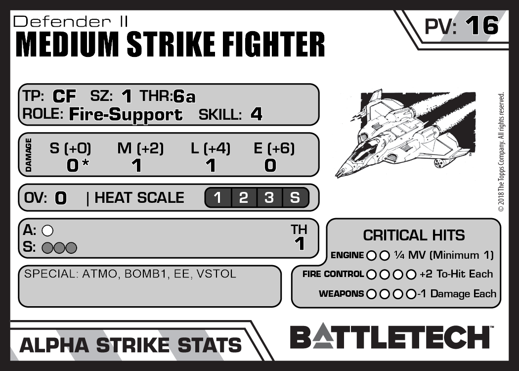 | Medium Strike Fighter Defender | 226 | 16 | Introductory | TR:3039 | |