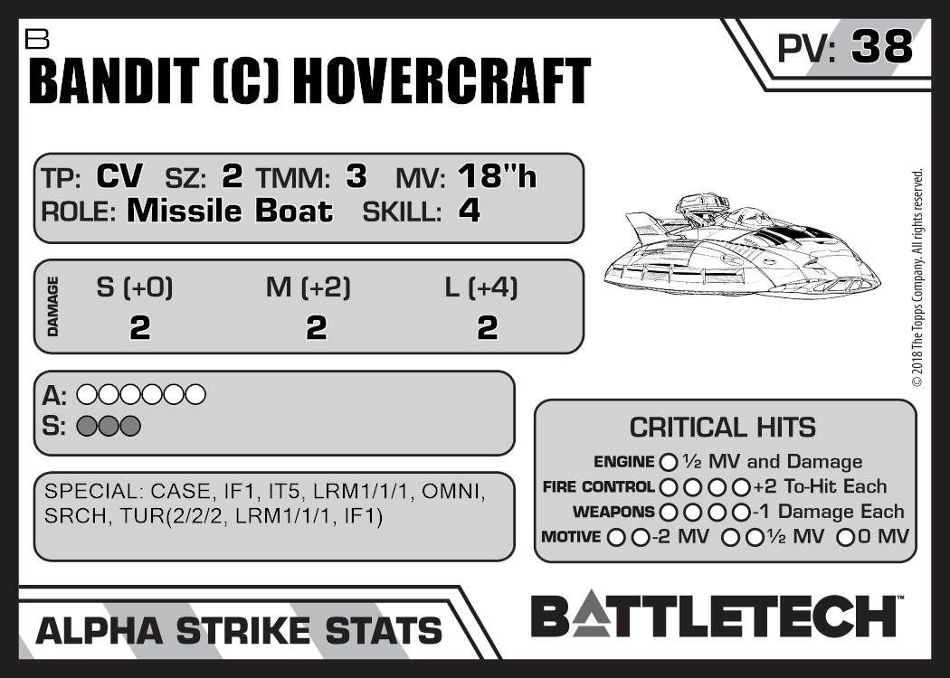 | Bandit (C) Hovercraft Prime | 1,054 | 40 | Standard | TR:3058U |