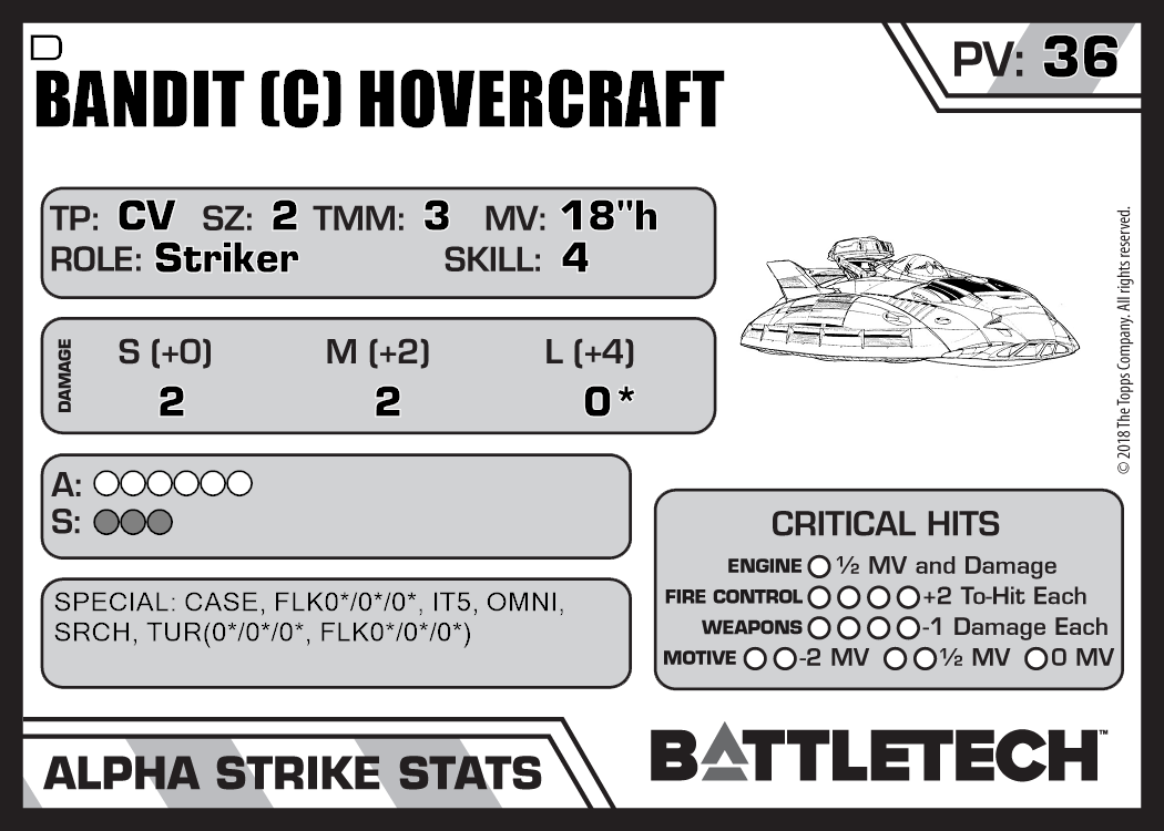 | Bandit (C) Hovercraft C | 1,231 | 40 | Standard | TR:3058U | |