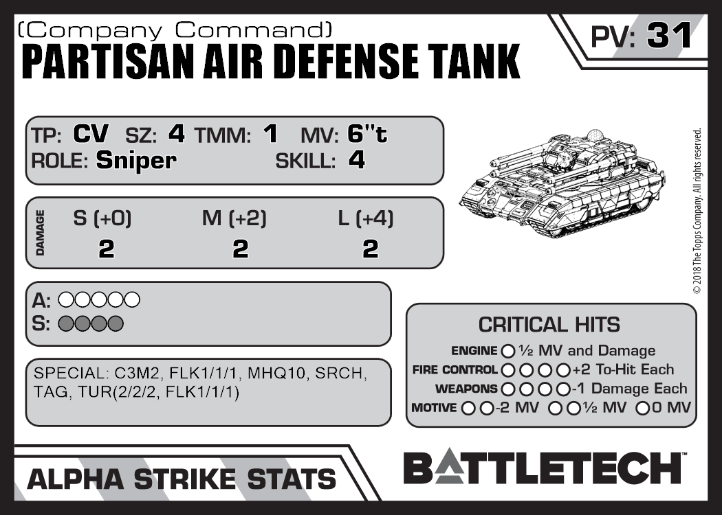 | Partisan Air Defense Tank (Quad RAC) | 1,296 | 34 | Standard | TR:3058U | |