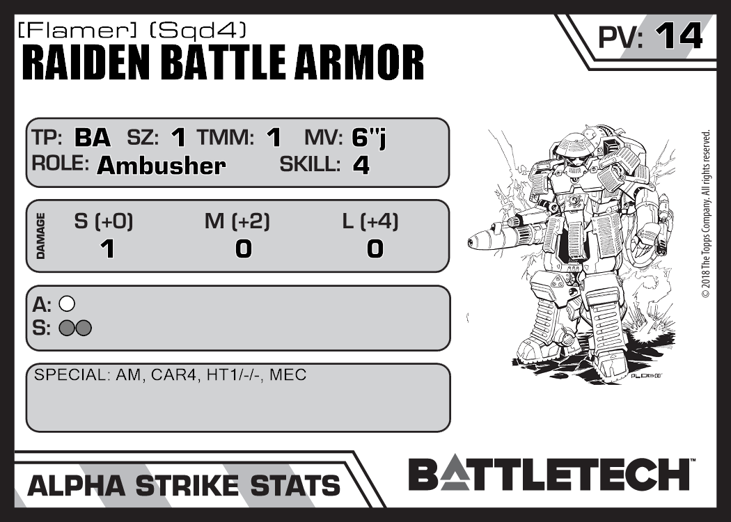 | Raiden Battle Armor [Laser] (Sqd6) | 400 | 17 | Standard | TR:3058U | |