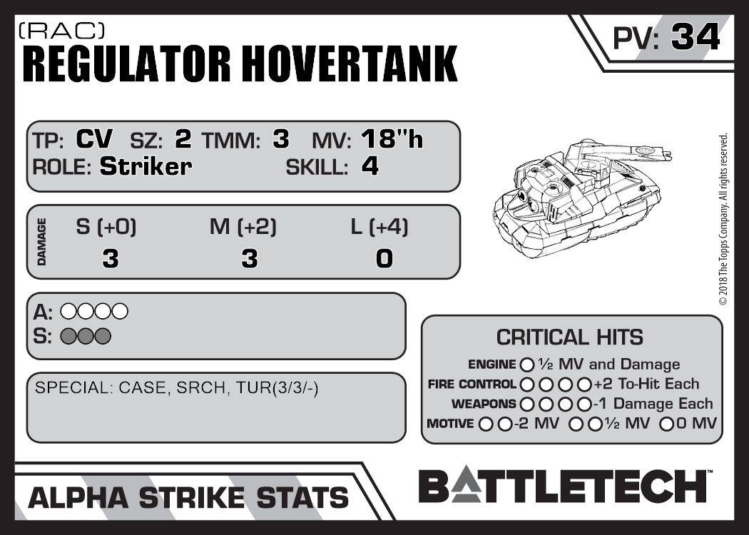 Regulator Hovertank 1,212 31 Standard TR:3058U