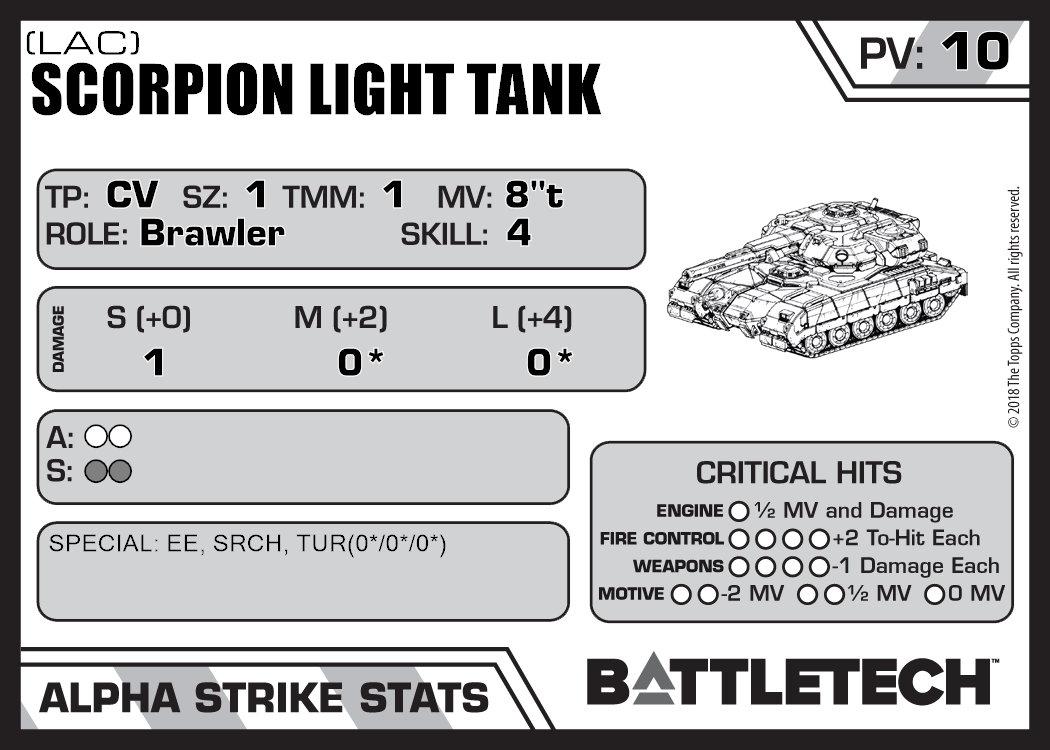 | Scorpion Light Tank (Armor) | 325 | 11 | Standard | RG33 | |