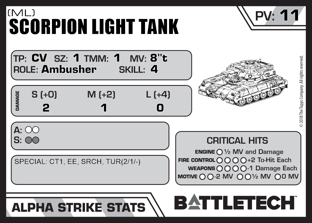 | Scorpion Light Tank (LRM) | 425 | 14 | Introductory | TR:3039 | |