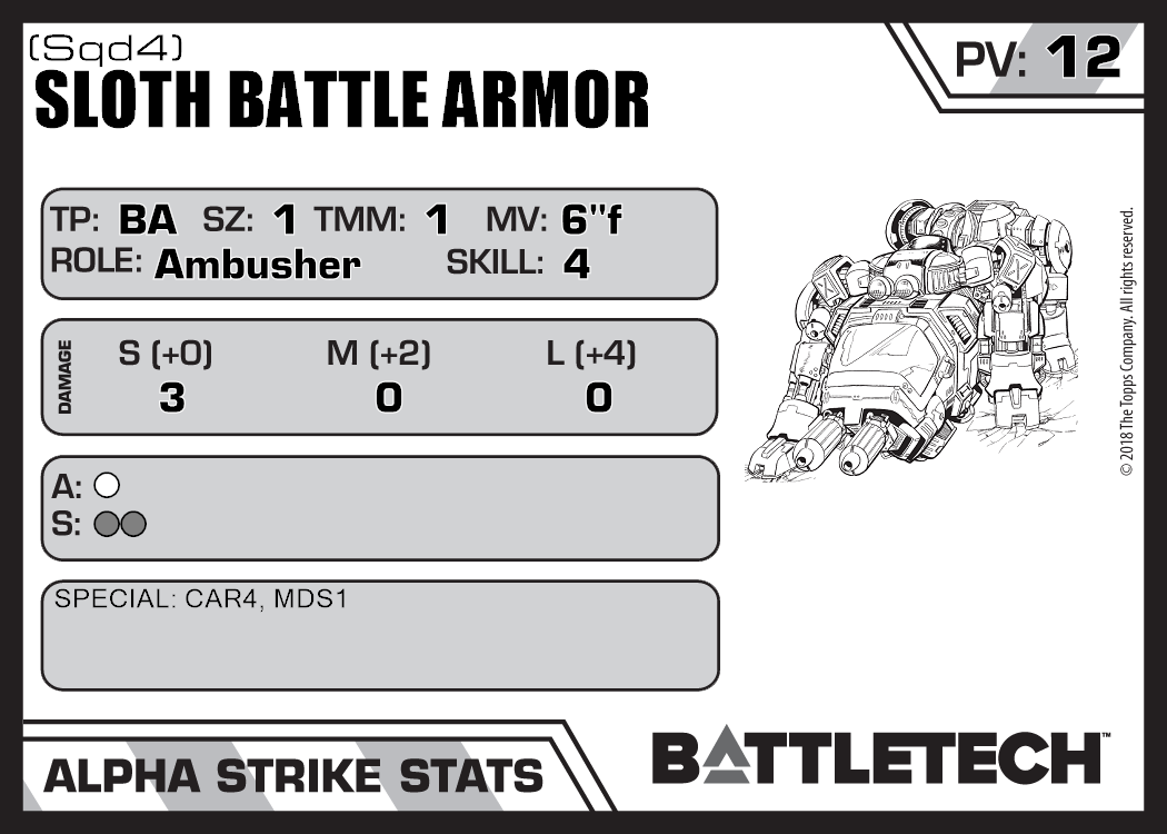 | Sloth Battle Armor (Sqd6) | 312 | 12 | Standard | TR:3058U | |