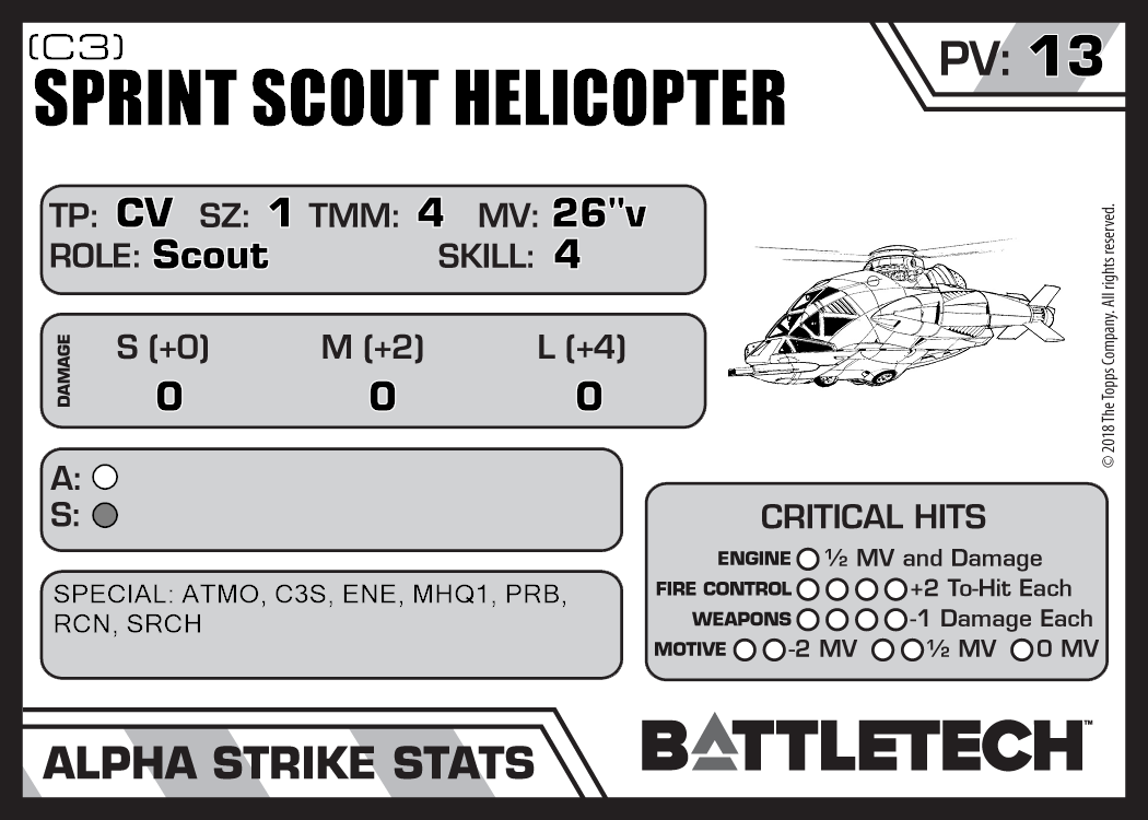 | Sprint Scout Helicopter (Interdictor) | 139 | 11 | Standard | TR:3085 | |