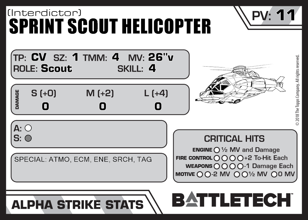 | Sprint Scout Helicopter (Troop Transport) | 71 | 9 | Standard | TR:3058U |