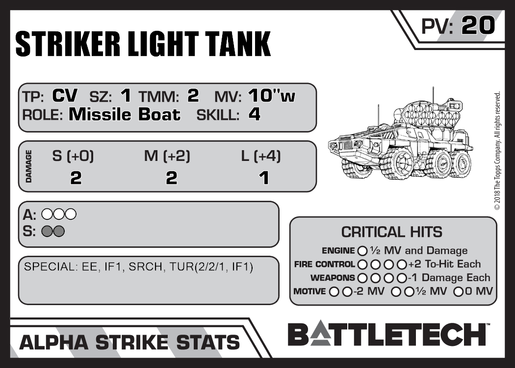 | Striker Light Tank (Sealed) | 590 | 19 | Advanced | TR:3085 | |