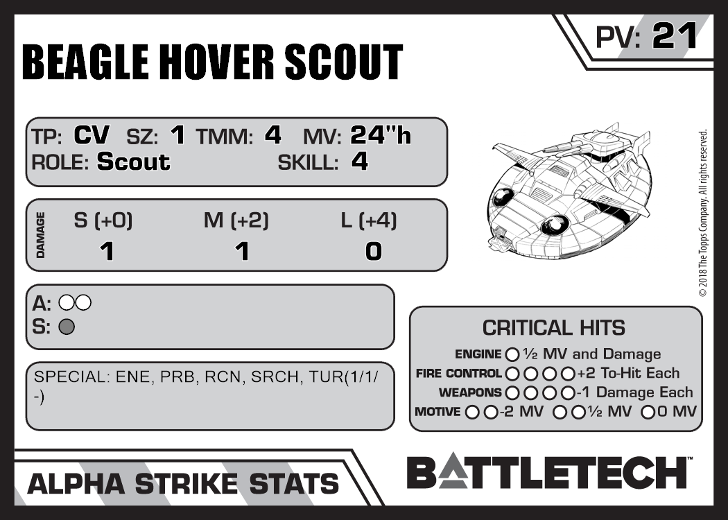 | Beagle Hover Scout (LRRP) | 219 | 15 | Experimental | XTR:Gunslingers |