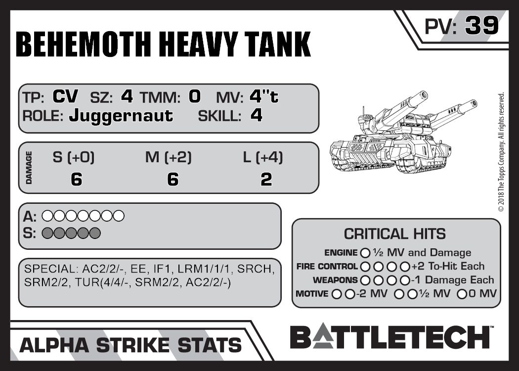 | Behemoth Heavy Tank (Kurita Upgrade) | 1,789 | 48 | Advanced | RG31 | |