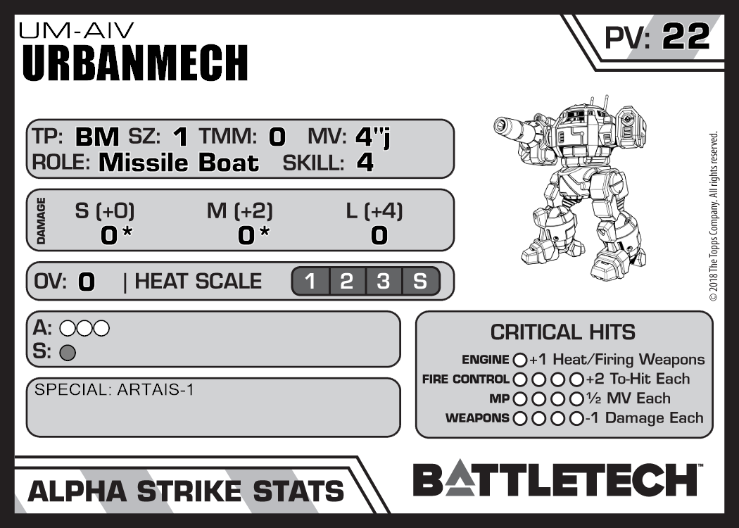 | UrbanMech UM-R96 | 852 | 22 | Advanced | RG02 | |