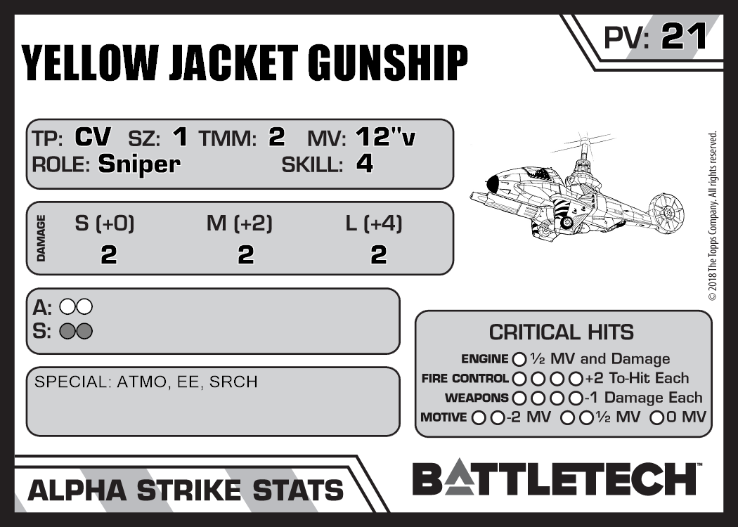 | Yellow Jacket Gunship (PPC) | 582 | 23 | Standard | TR:3085 | |