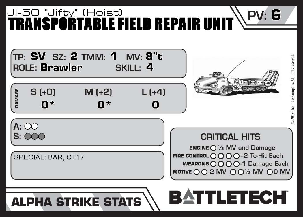 | Transportable Field Repair Unit JI-50 "Jifty" (MG) | 231 | 4 | Standard | TR:3075 | |