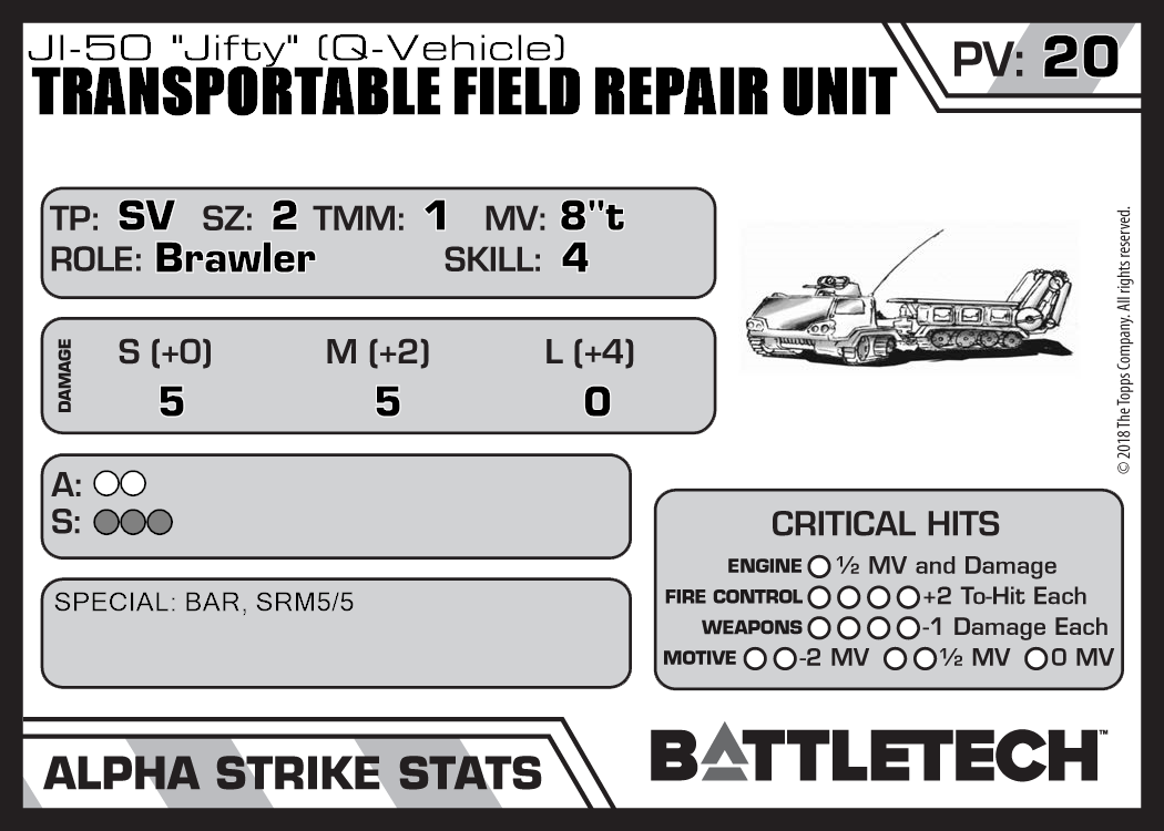 | Transportable Field Repair Unit JI-50 "Jifty" (MG) | 231 | 4 | Standard | TR:3075 | |