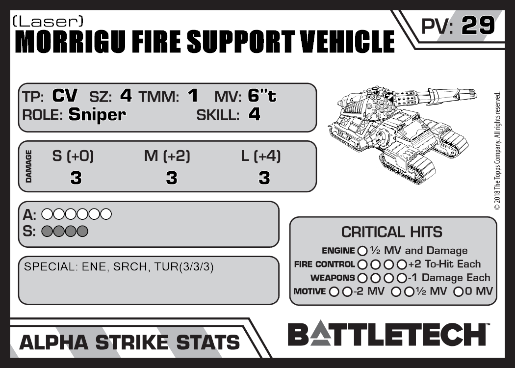 Morrigu Fire Support Vehicle 1,685 42 Standard TR:3067