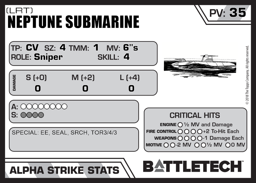 | Neptune Submarine (Hunter-Killer) | 948 | 34 | Introductory | HTP:Galtor | |
