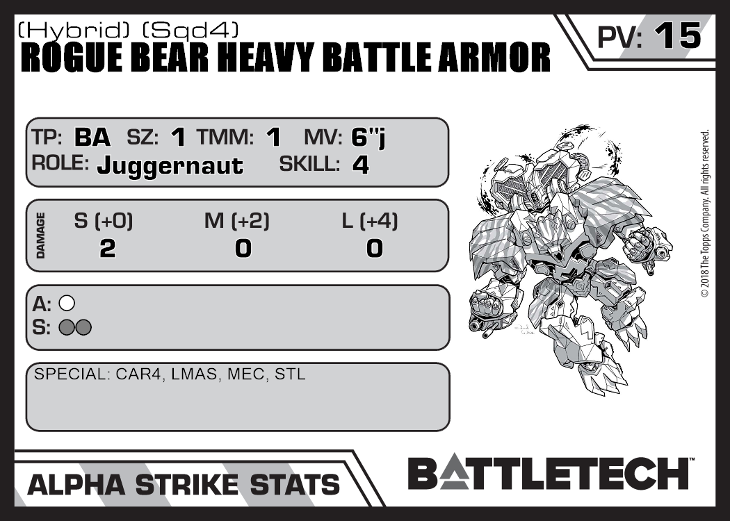 | Rogue Bear Heavy Battle Armor HR (Sqd6) | 432 | 19 | Experimental | XTR:Clans | |