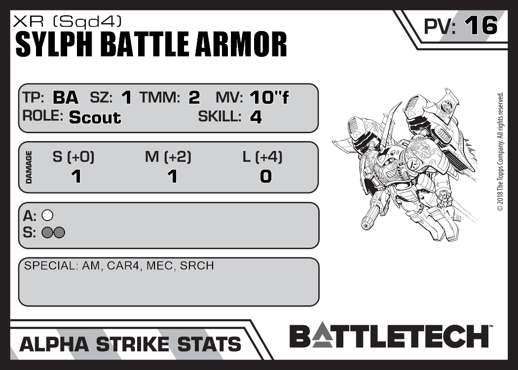 | Sylph Battle Armor (Sqd6) | 485 | 16 | Standard | TR:3058U | |
