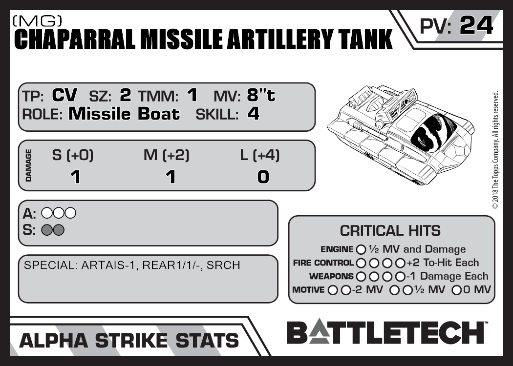 | Chaparral Missile Artillery Tank | 812 | 24 | Advanced | TR:3050U |