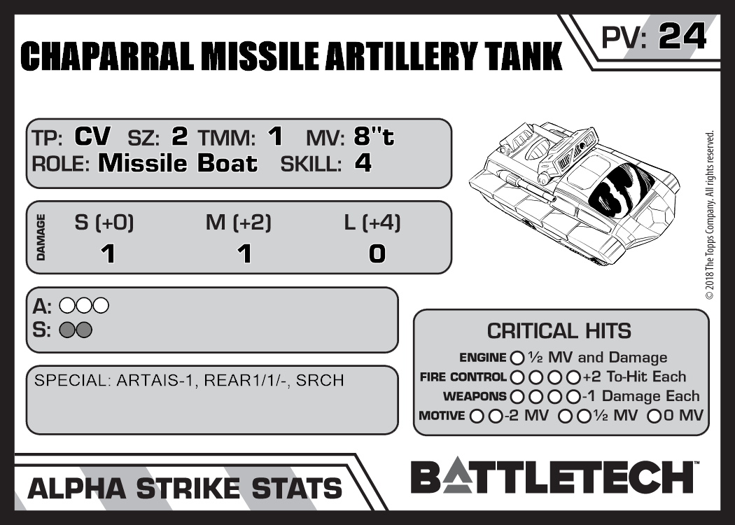 | Chaparral Missile Artillery Tank (SRM) | 832 | 24 | Advanced | TR:3050U |