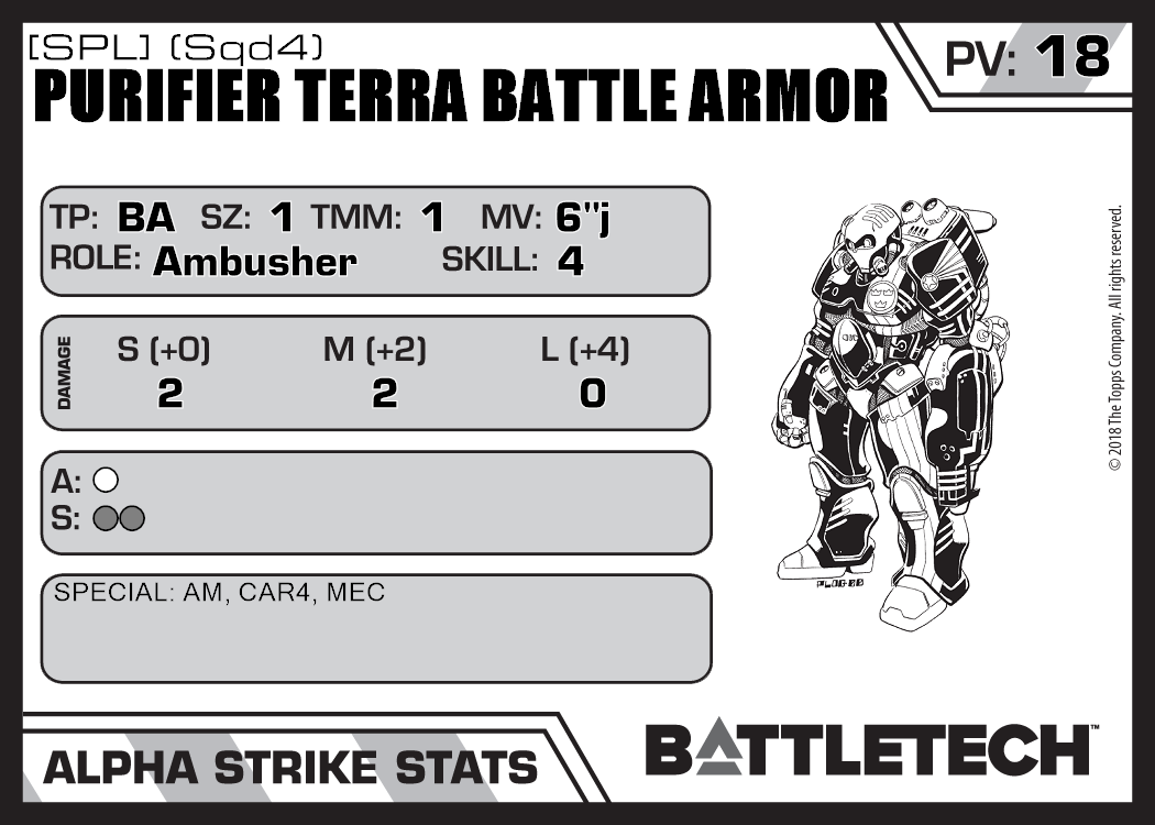 | Purifier Terra Battle Armor [SPL] (Sqd6) | 637 | 21 | Experimental | XTR:Phantoms | |