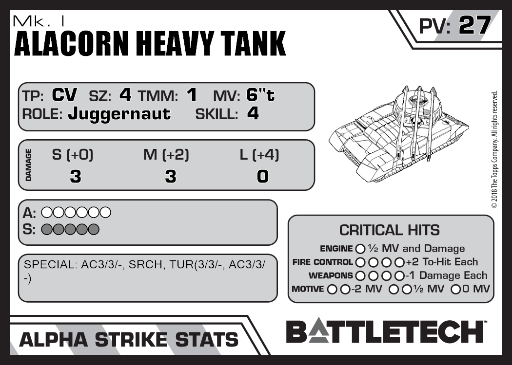| Alacorn Heavy Tank Mk. VI | 1,850 | 39 | Standard | TR:3058U | |