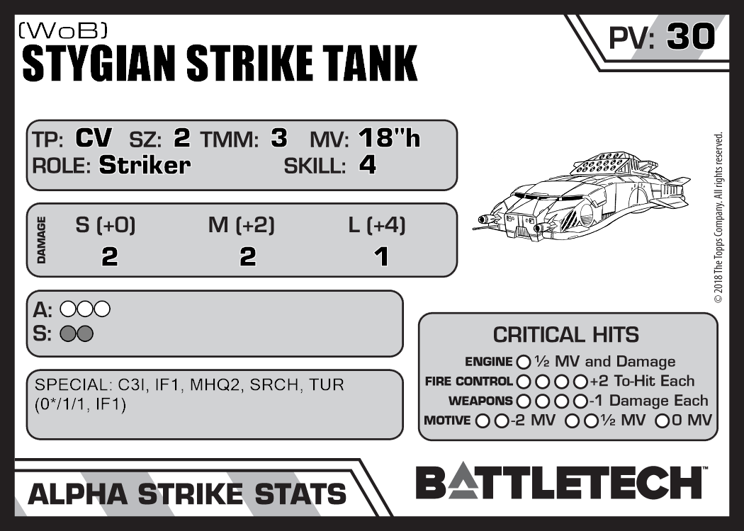 Stygian Strike Tank (Armor) 1,001 30 Standard TR:3067