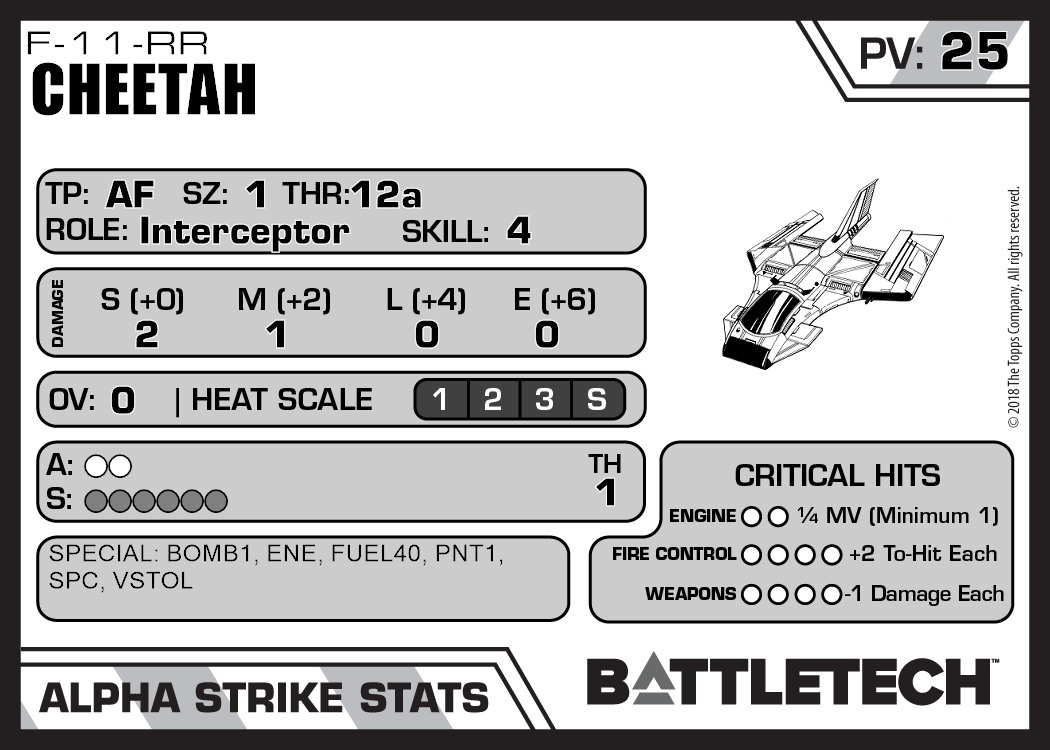 | Cheetah F-11-R | 197 | 21 | Introductory | TR:3039 | |