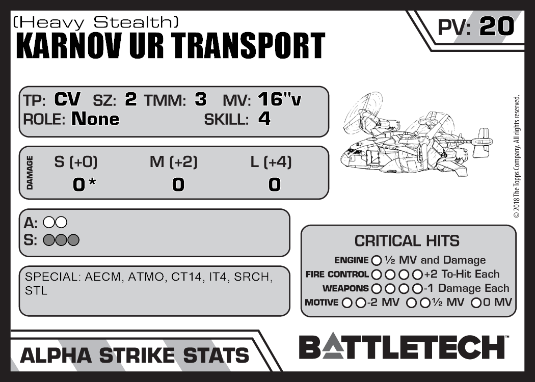 | Karnov UR Transport (BA Stealth) | 233 | 14 | Standard | RG33 | |