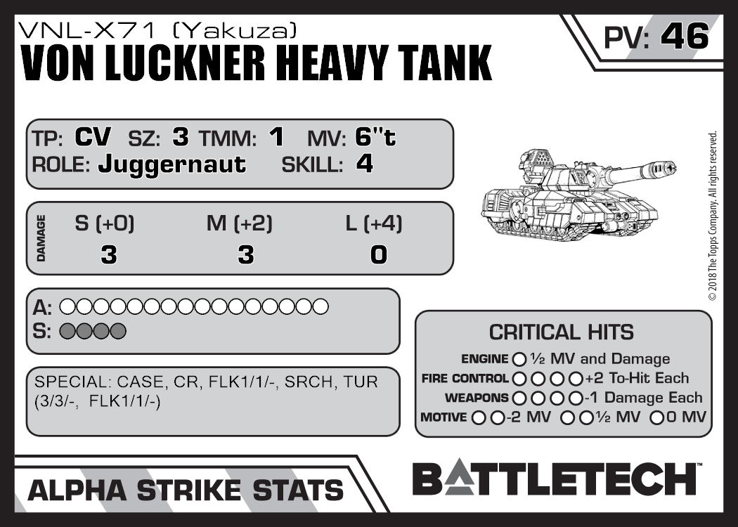 Von Luckner Heavy Tank (Star League) 1,216 37 Standard His:OK