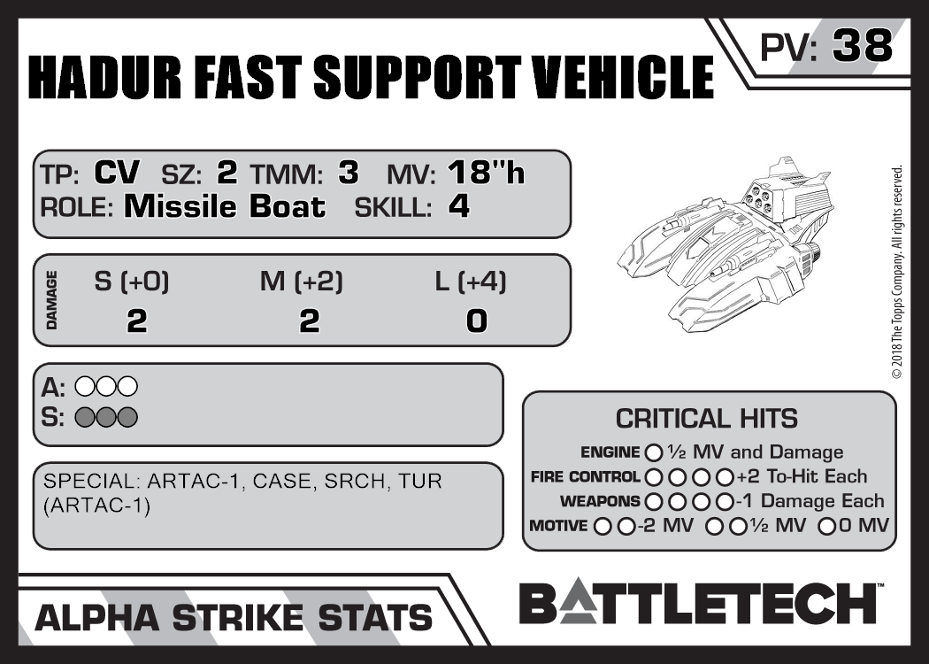 Hadur Fast Support Vehicle (Reactive) 1,785 39 Advanced TR:3150