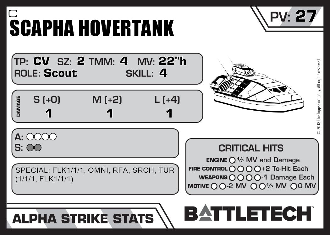 | Scapha Hovertank I | 2,096 | 32 | Advanced | TR:3145 | |