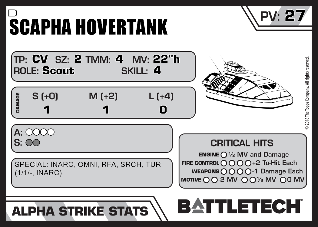 | Scapha Hovertank I | 2,096 | 32 | Advanced | TR:3145 | |