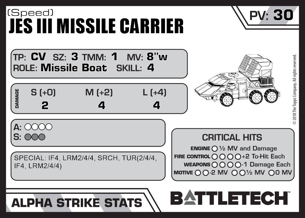| JES III Missile Carrier | 1,037 | 31 | Standard | TR:3145 | |