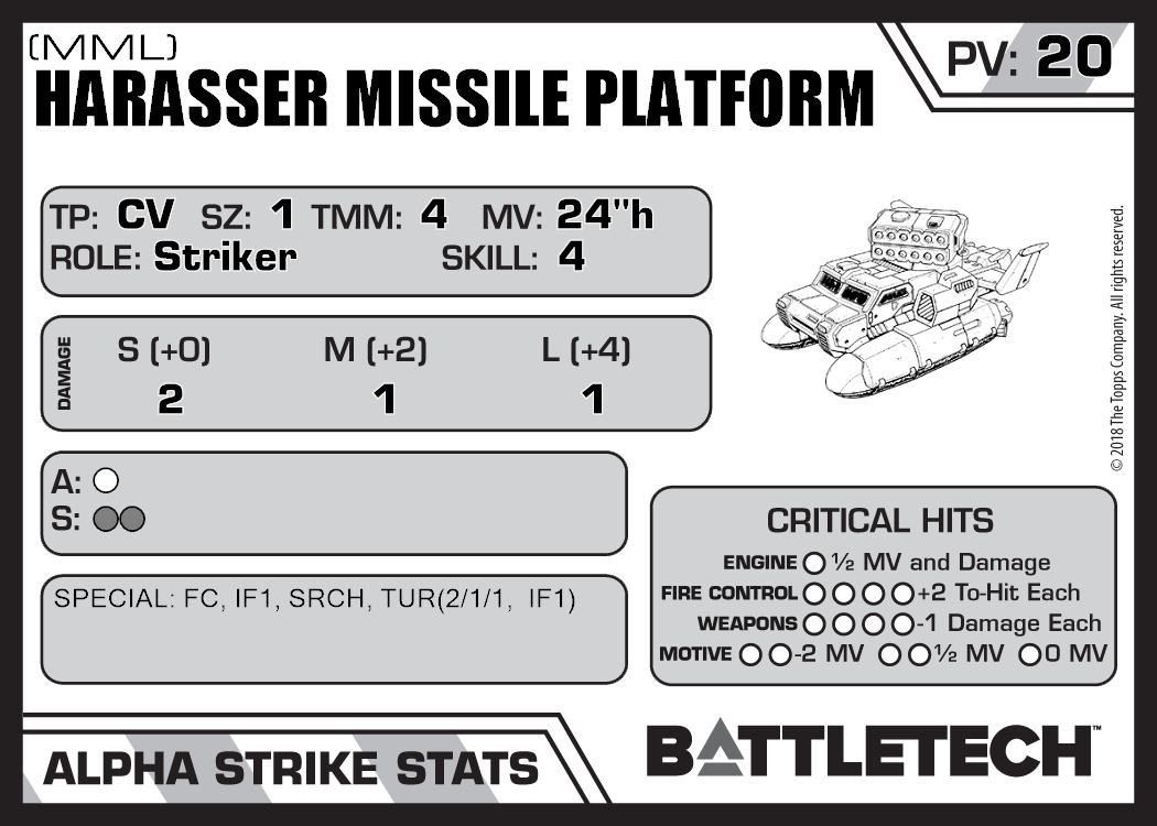 | Harasser Missile Platform (LRM) | 412 | 18 | Introductory | TR:3039 | |
